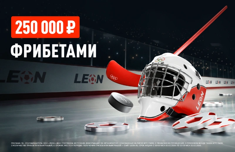 Реклама 18+. Рекламодатель: ООО «Леон» ИНН: 7707760834. Источник информации об организаторе основанных на риске игр, пари, о правилах их проведения, о призовом фонде таких игр, пари, о количестве призов или выигрышей, о сроках, месте и порядке получения призов или выигрышей — сайт Leon.ru. Срок акции: с 00:00 МСК 05.02.2026 по 23:59 МСК 22.02.2026.