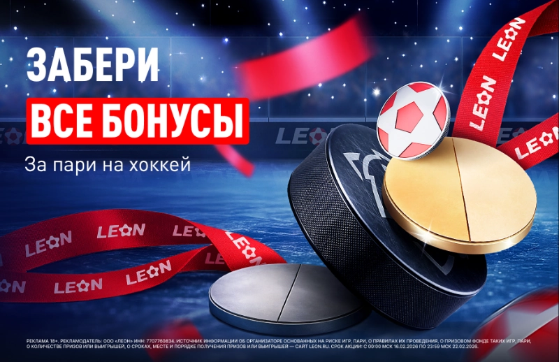 Реклама 18+. Рекламодатель: ООО «Леон» ИНН: 7707760834. Источник информации об организаторе основанных на риске игр, пари, о правилах их проведения, о призовом фонде таких игр, пари, о количестве призов или выигрышей, о сроках, месте и порядке получения призов или выигрышей — сайт Leon.ru. Срок акции: с 00:00 МСК 16.02.2026 по 23:59 МСК 22.02.2026.